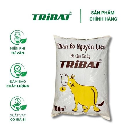 • Phân bò Tribat 10dm3 là sản phẩm từ 100% phân bò hoai mục tự nhiên đã qua xử lý nên giảm mùi và loại bỏ những thành phần có hại cho cây.